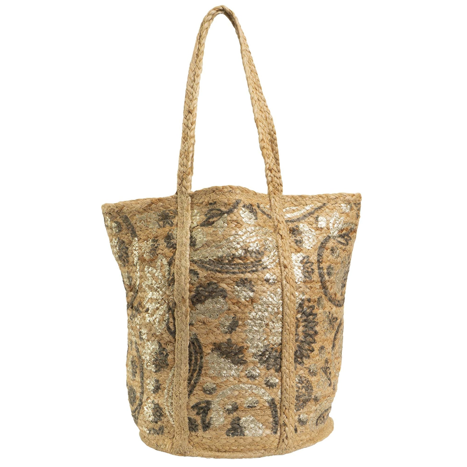 Magid Metallic Floral Print Natural Straw Jute Tote
