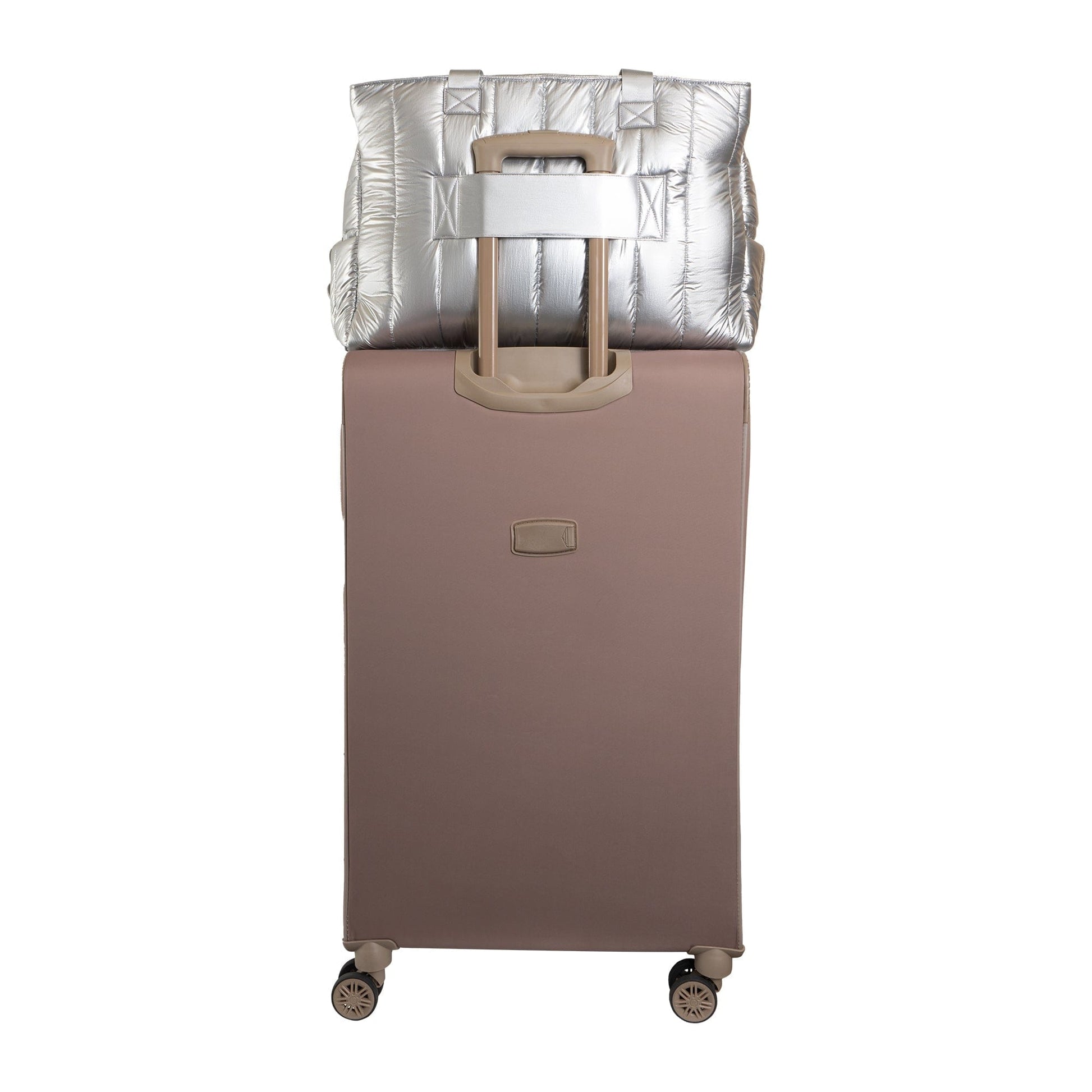 Whether you’re heading to work, the gym, or jet-setting around the world, the Joan & David Metallic Tubular Nylon Tote combines practicality with a stylish edge. Perfect for the savvy traveler and everyday adventurer alike!