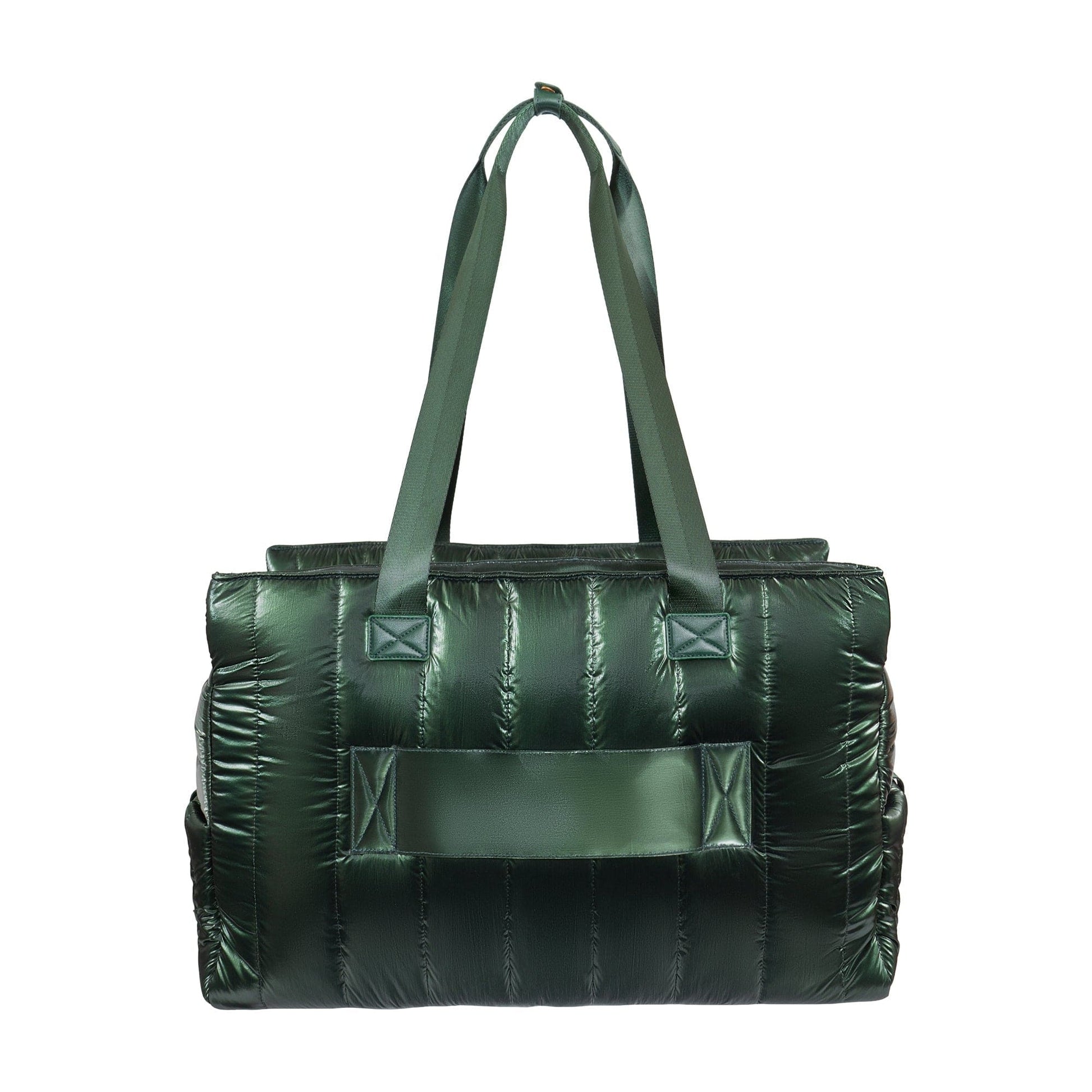 Joan & David Metallic Tubular Quilted Nylon Puffer Tote