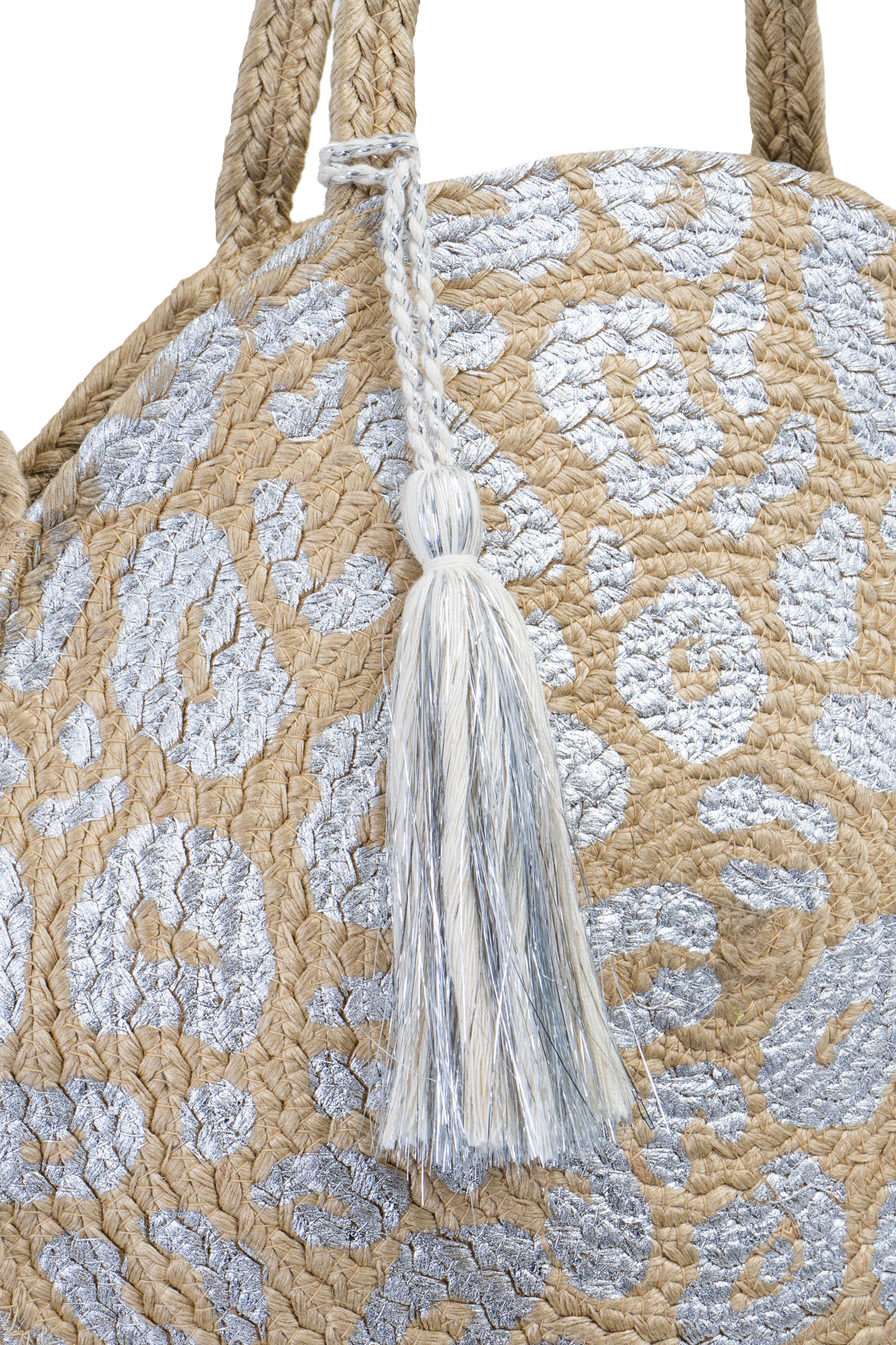 Magid Metallic Leopard Print Straw Jute Circle Tote