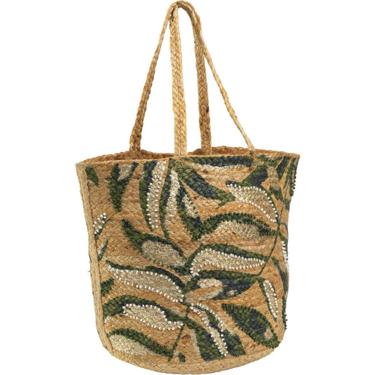 Magid Beaded Palm Print Natural Straw Jute Tote