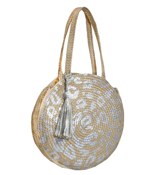 Magid Metallic Leopard Print Straw Jute Circle Tote