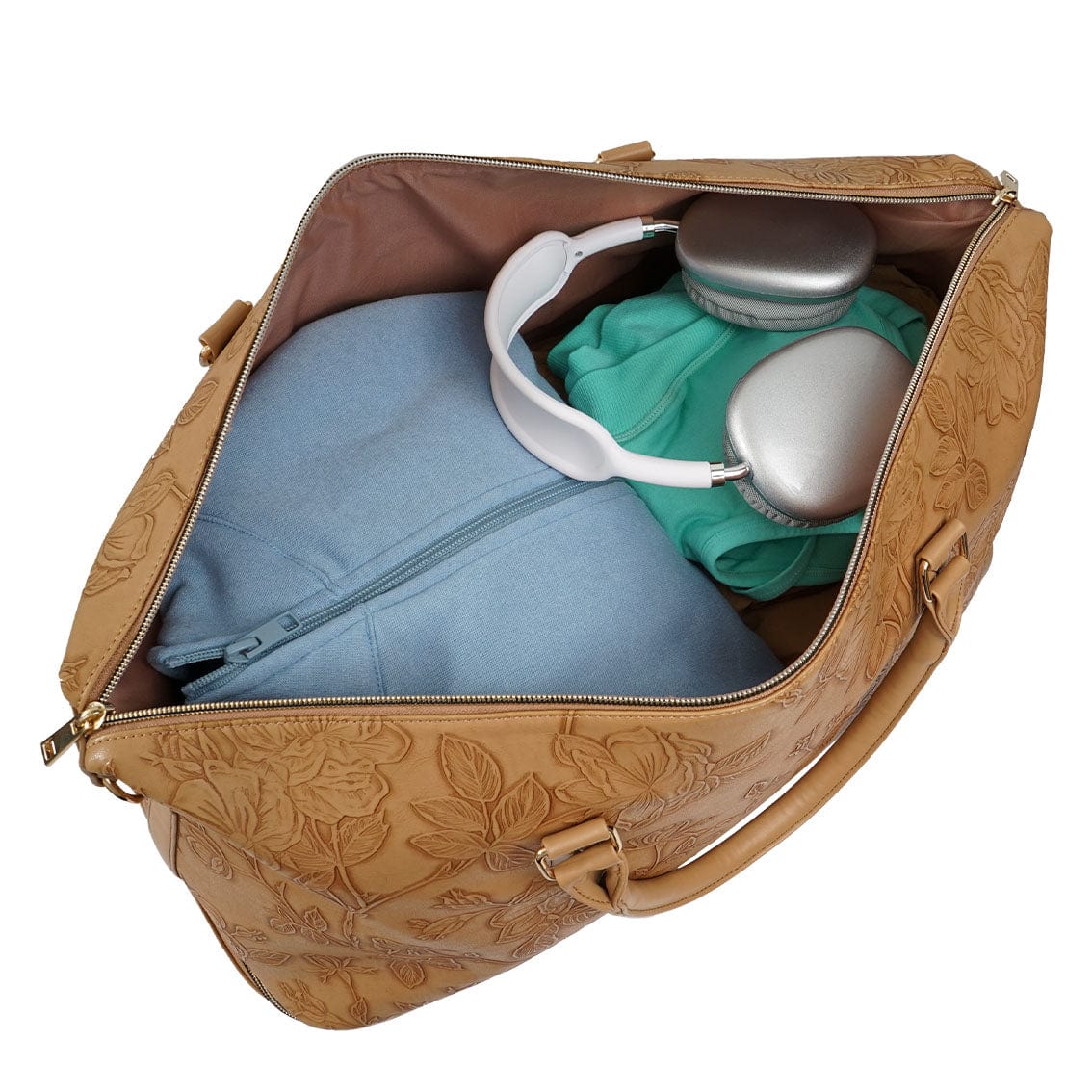 Ellen Tracy 20 Inch Floral Embossed Faux Leather Drop Bottom Duffel