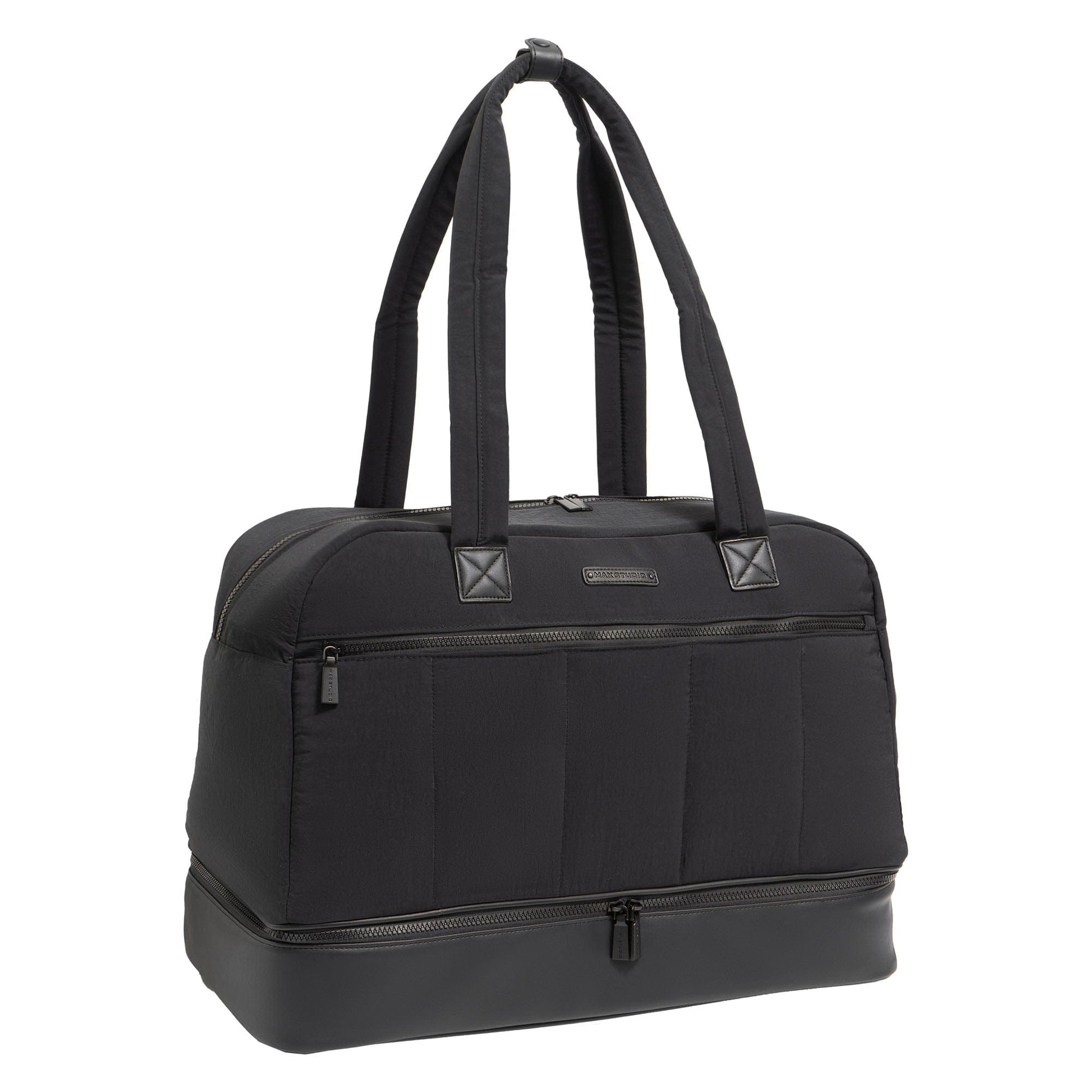 Elevate your weekend travels with the Max Studio Puffer Nylon Drop Bottom Weekender Duffle—where practicality meets fashion-forward design.