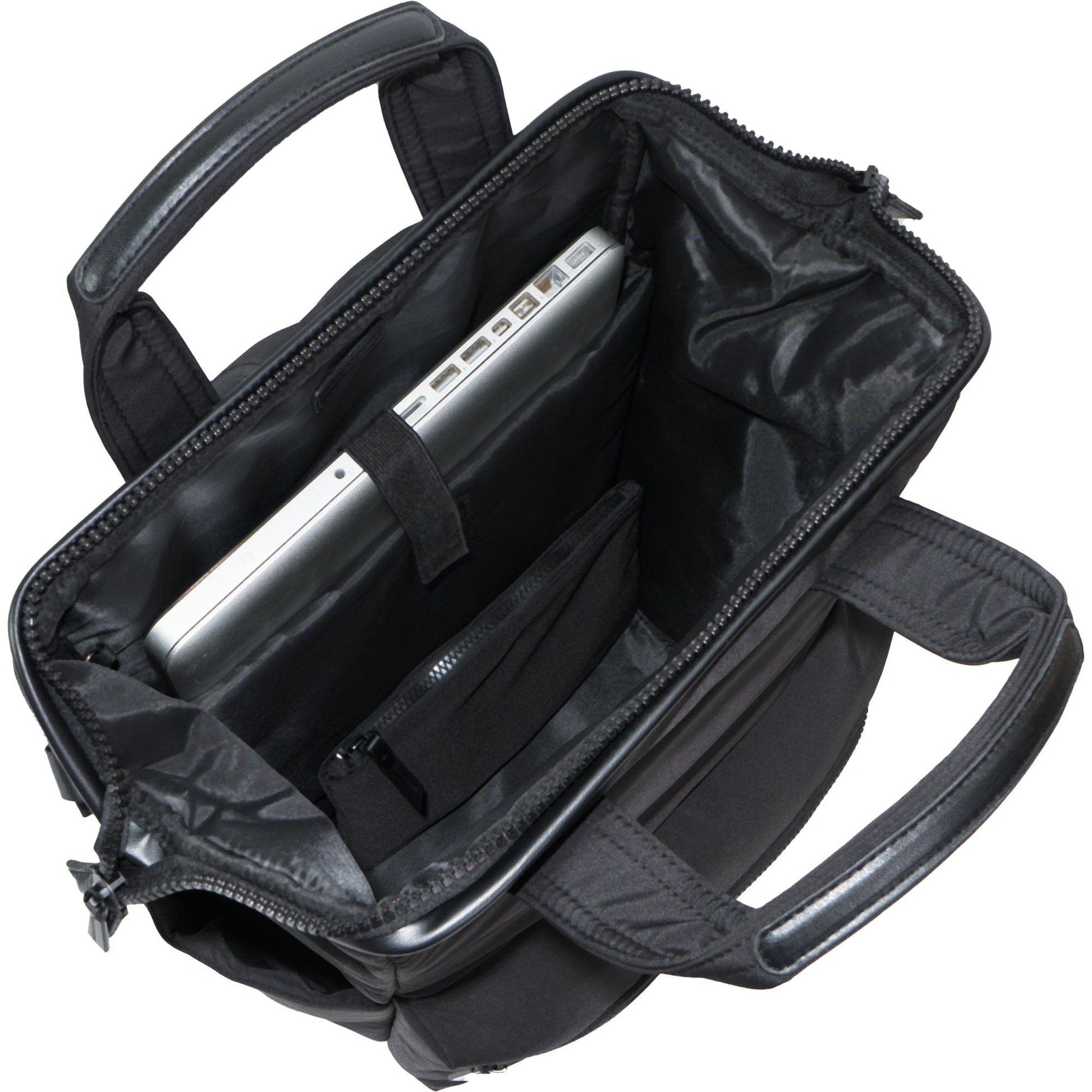 • Organized Interior: Features a padded workbook sleeve and an interior zip pocket to keep your essentials neatly arranged.