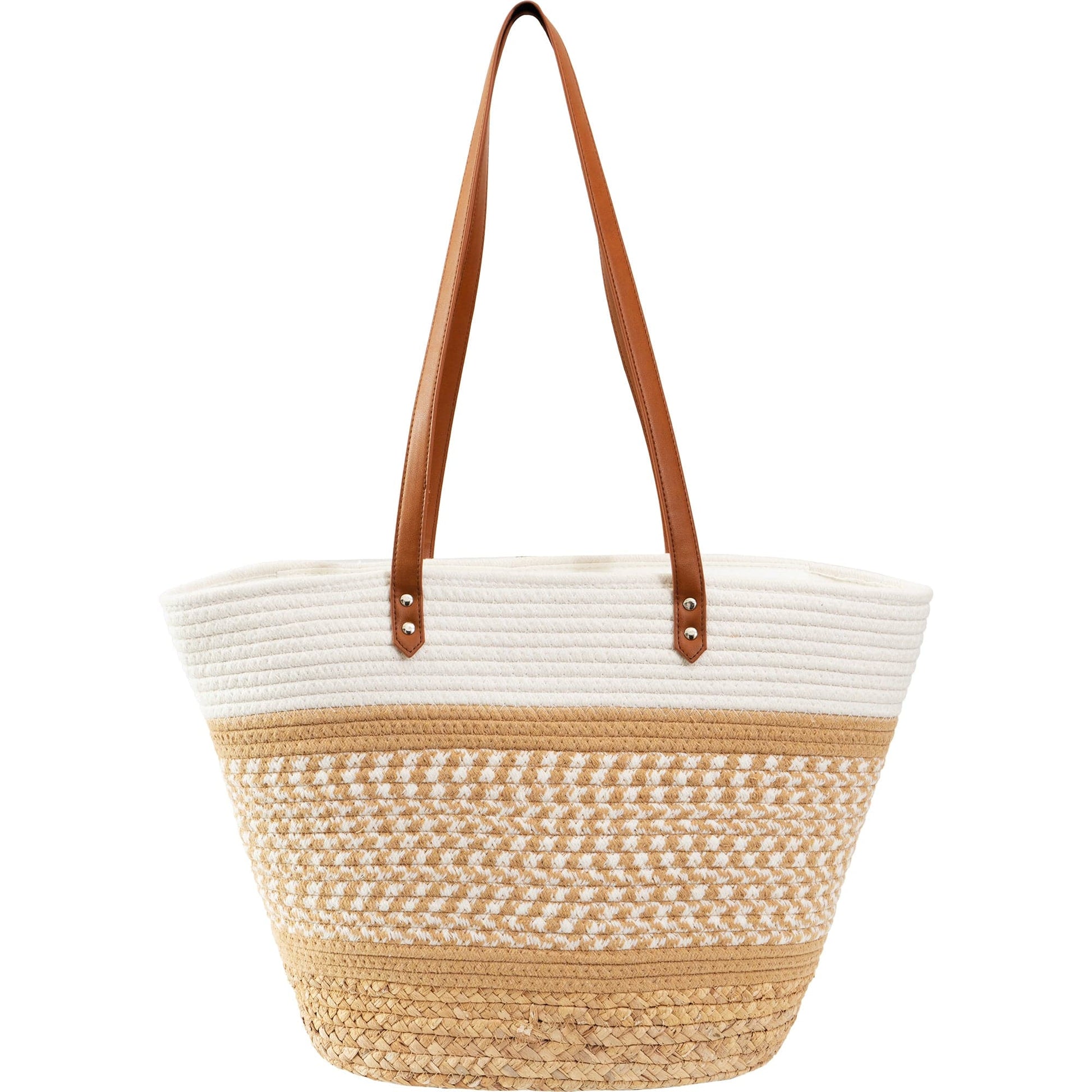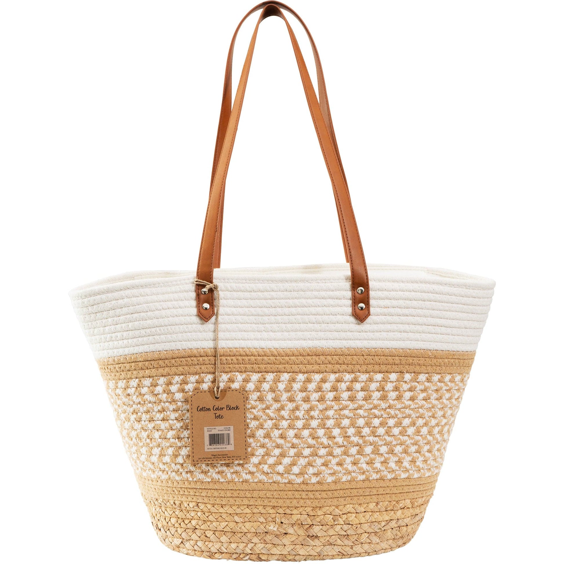 Magid Natural Cotton Woven & Faux Leather Shoulder Tote
